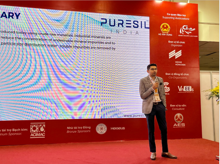 Hanoi, Vietnam – Anil Nandaniya, the esteemed Managing Director of PURESIL India, took the stage as a distinguished guest speaker at the ASEAN Ceramics 2023 event held in Hanoi, Vietnam. His insightful presentation on Ceramic Raw Materials captivated the audience, shedding